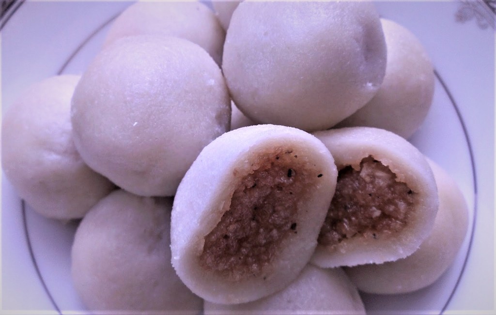 It is a steamed Pitha which is prepared from rice flour or semolina with a rich coconut filling.It is a steamed variety of Kakara Pitha and is a great choice for health-conscious people as it is prepared by steaming only.